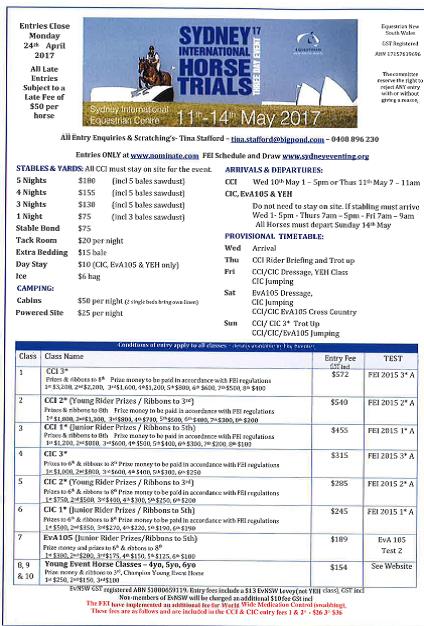 Add to your Calendar 11-05-2017 00:00:00 15-05-2017 00:00:00 Australia/Sydney Sydney International Horse Trials Sydney International Horse Trials Location Sydney International Equestrian Centre [email protected] Sydney International Horse Trials